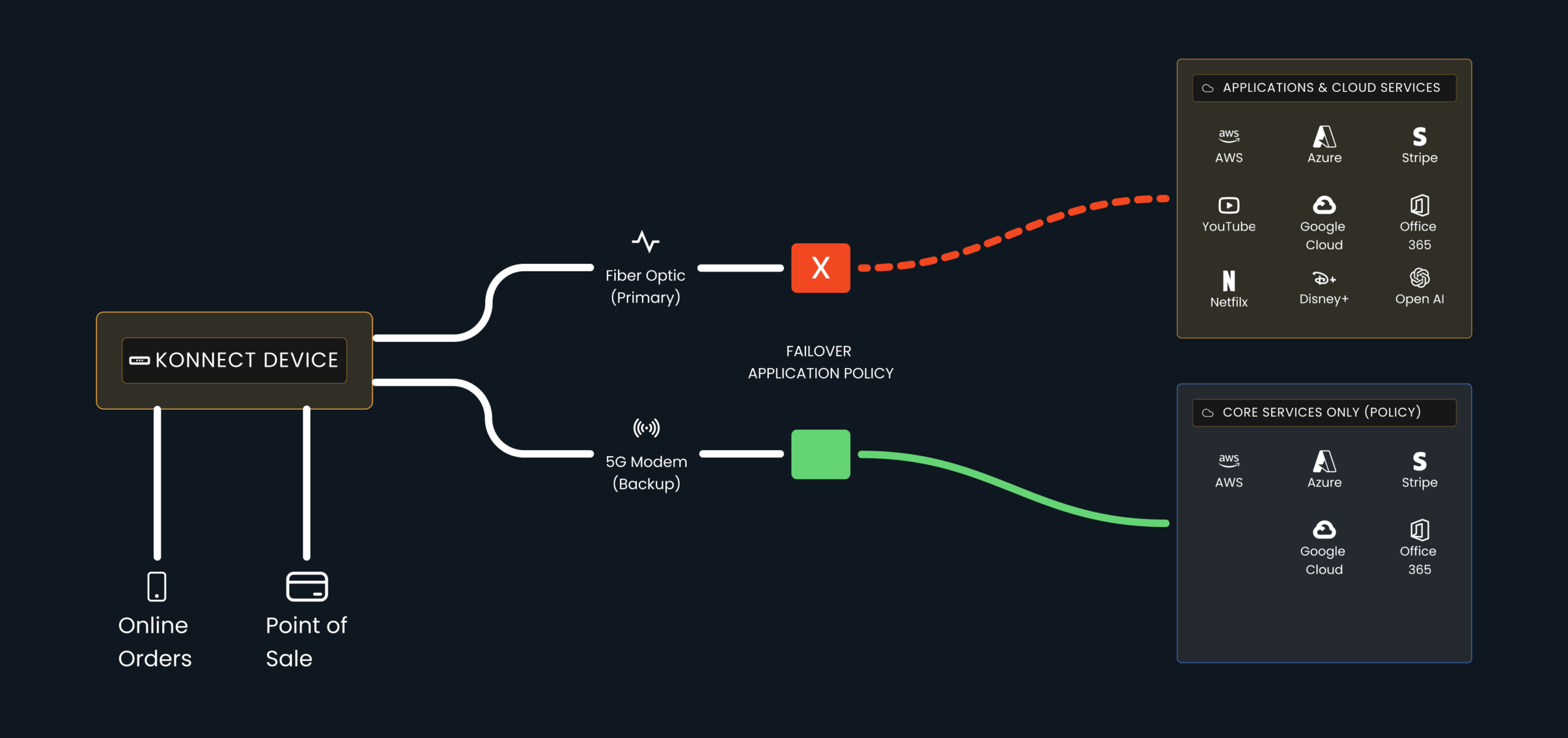 - Reliable internet with fast failover Rate and application filtering provide cost controls during a failover event